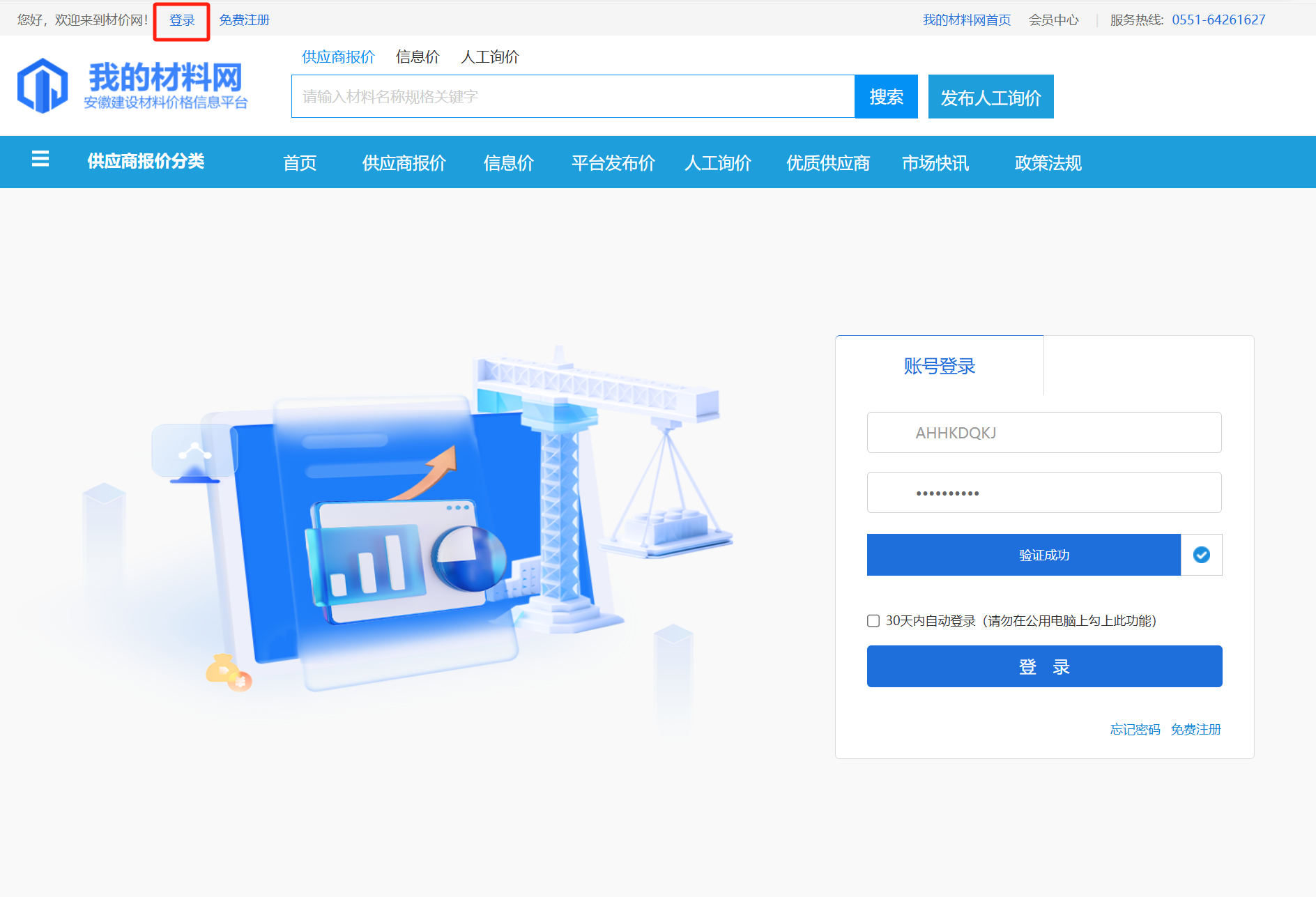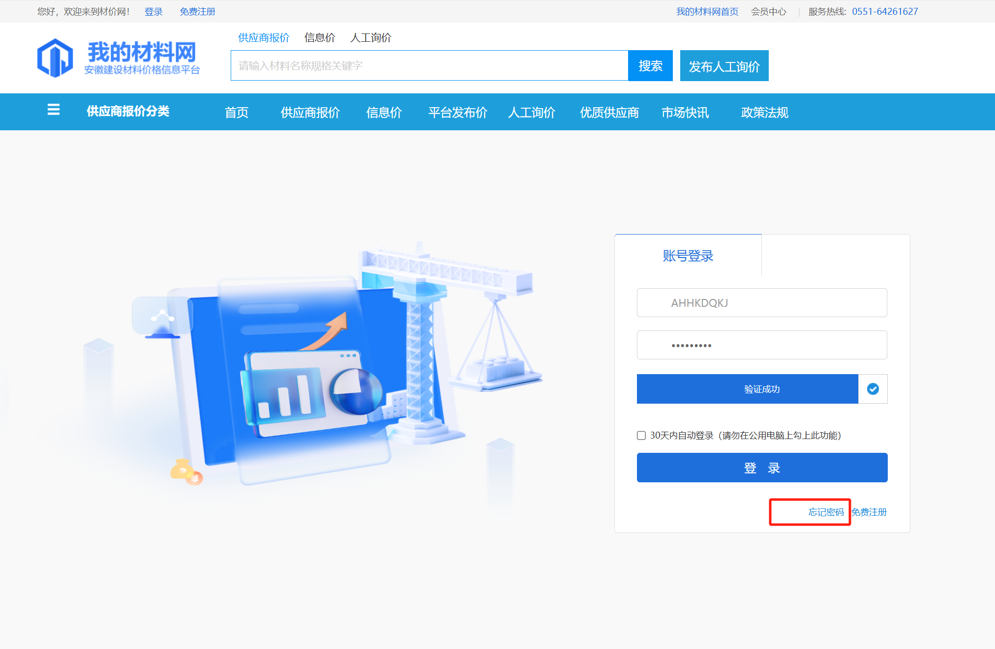 二、点击登录,如跳转首页则登录成功,如果出现 提示信息为 '用户名或密码不正确' 请检查用户名和密码再次登录,如果忘记了密码 可以点击右下角有忘记密码的功能